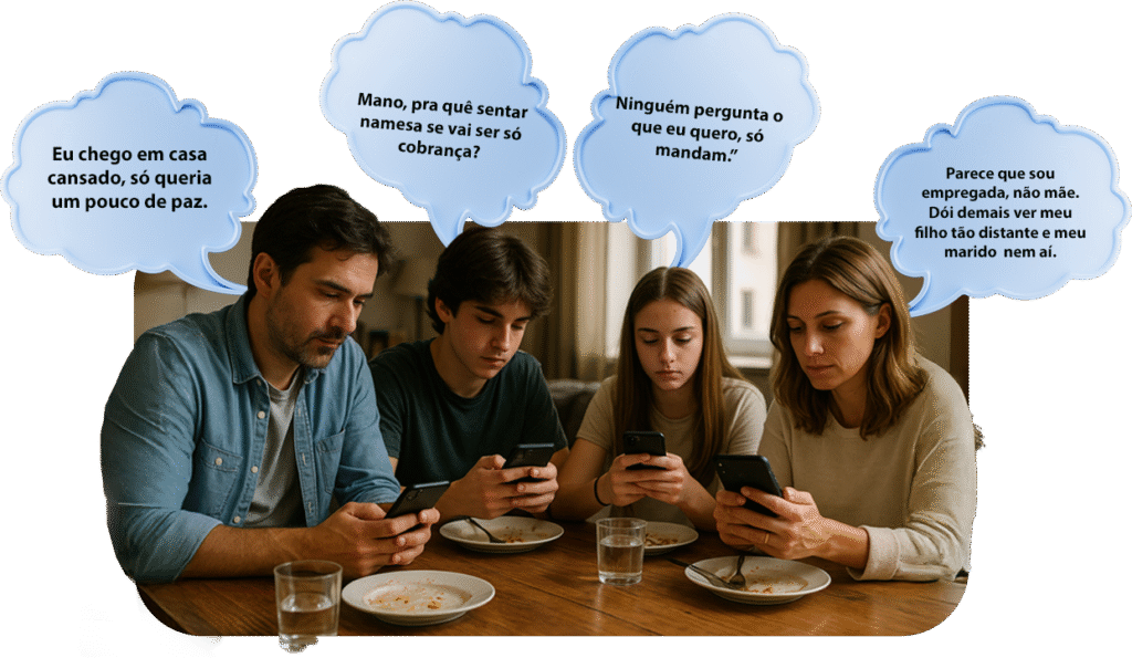 Sei como é olhar para uma mesa vazia e sentir que sua família está se perdendo no meio da correria, e esse silêncio dói.