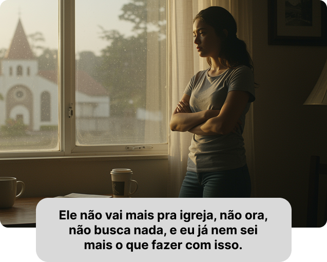 Sei como é olhar para o banco ao lado na igreja e desejar que ele estivesse ali com você. Mas hoje, depois de ajudar centenas de mulheres a reconectarem seus maridos com a fé, posso te dizer: existe um caminho.