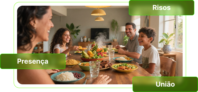 Tenha momentos reais à mesa, com conversa, risada e presença, do jeito que sempre deveria ter sido sem celular.